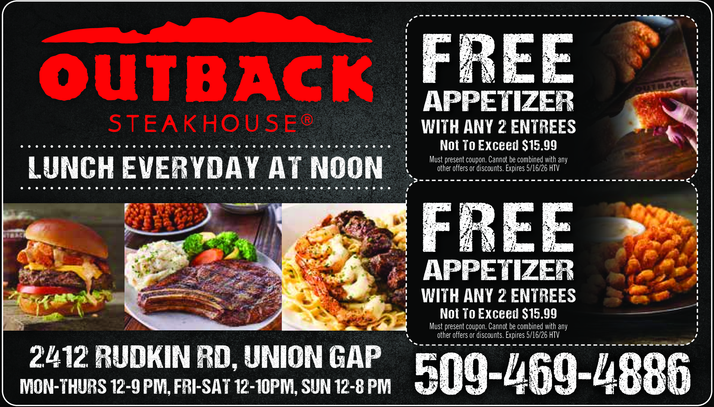 Must present coupon. Cannot be combined with any other offers or discounts. Expires 5/16/26. HTV