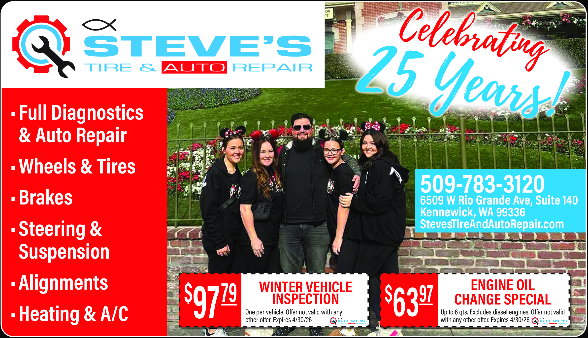 One per vehicle. Offer not valid with any other offer. Expires 4/30/26.