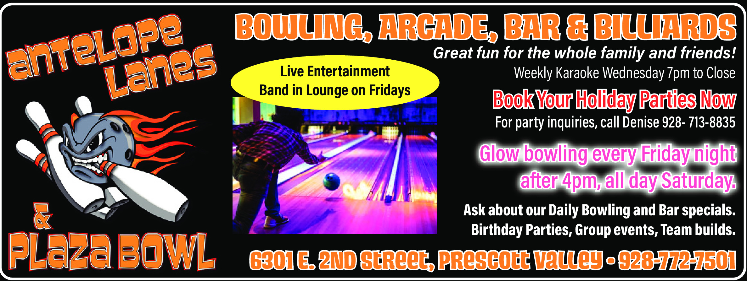 Ask about our daily bowling and bar specials