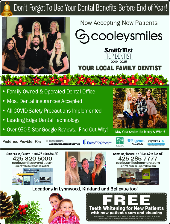 Named Top Dentist by Seattle Met, Cooley Smiles is a family owned and operated office with hundreds of 5-Star Google Reviews!