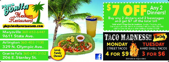 Valid at all 3 Playa Bonita locations. Sunday - Thursday only. One coupon per table. Not to be combi