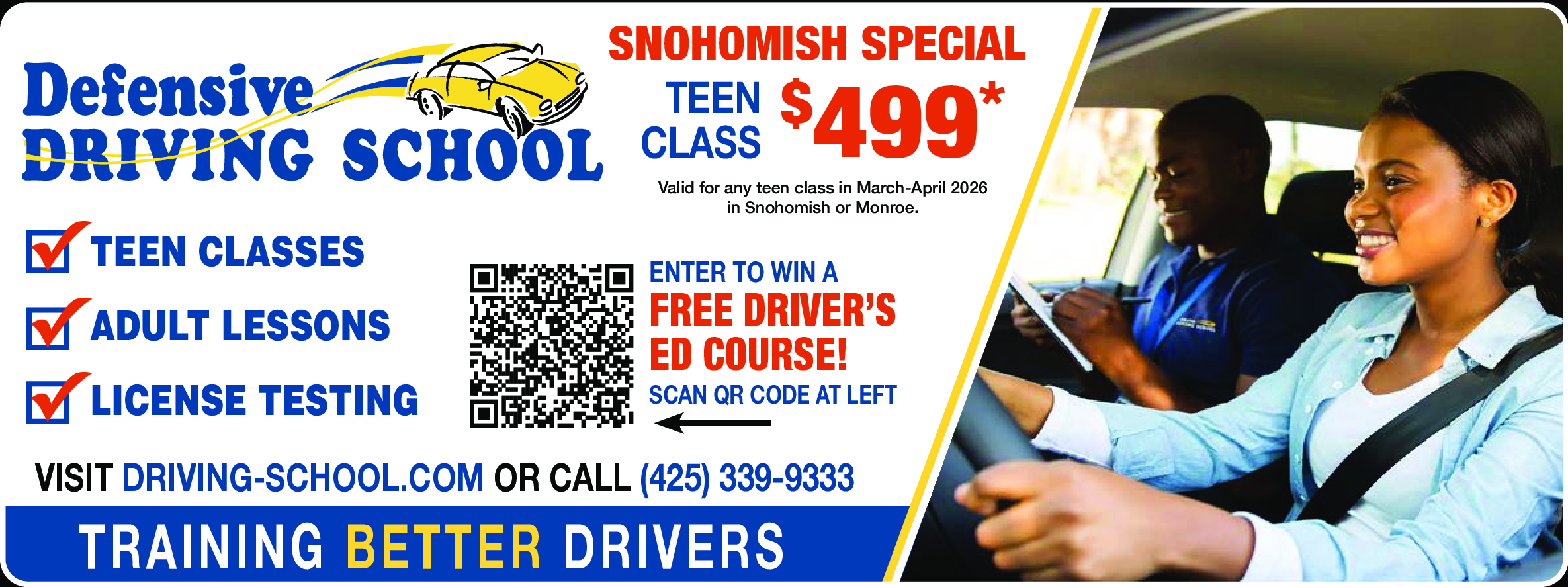 Valid for any teen class in March-April 2026 in Snohomish or Monroe.