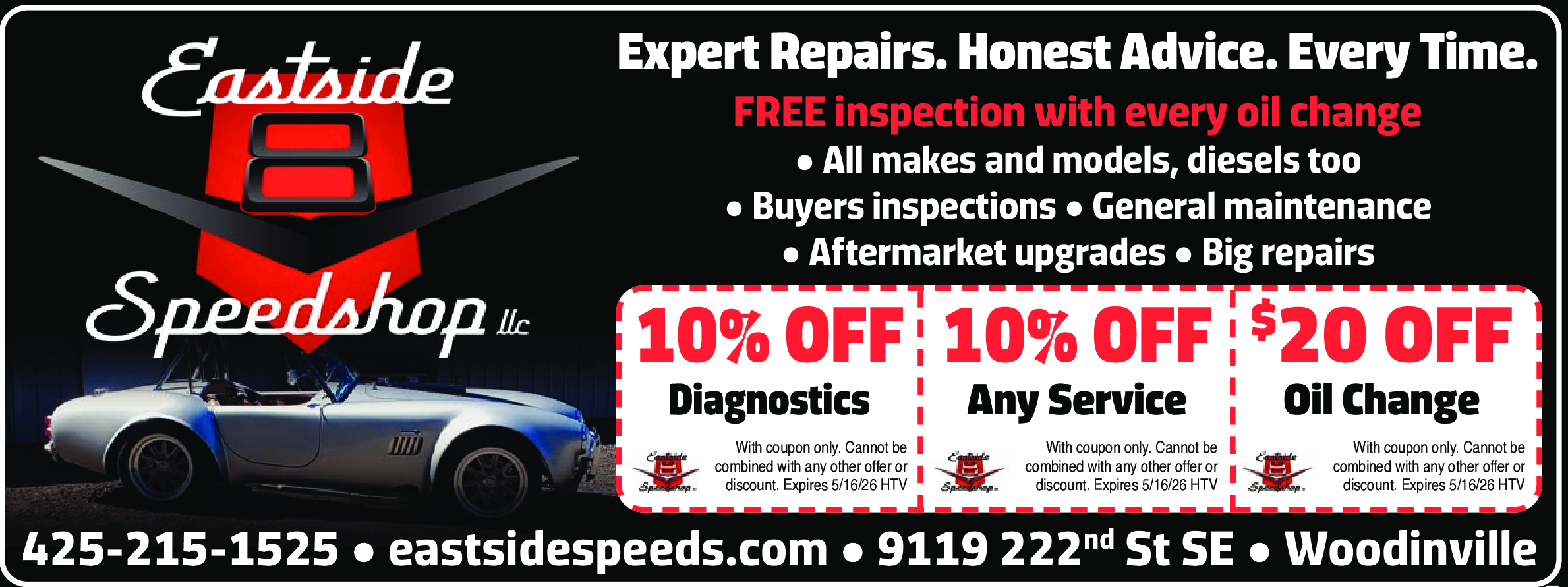 With coupon only. Cannot be combined with any other offer or discount. Expires 5/16/26. HTV