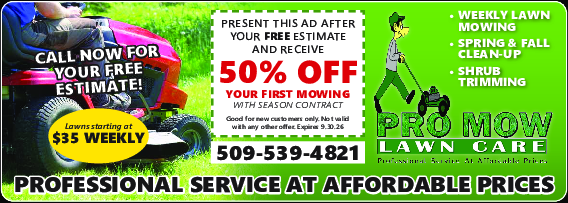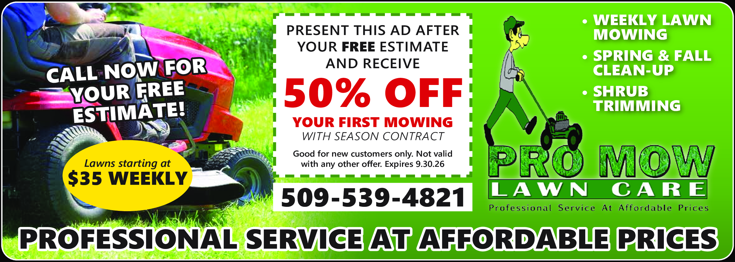Present this ad after your FREE estimate and receive 50% OFF your first mowing with seasonal contract