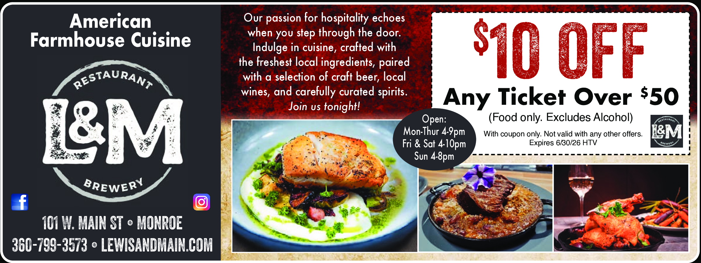 Food only. Excludes alcohol. With coupon only. Not valid with any other offers. Expires 6/30/26. HTV