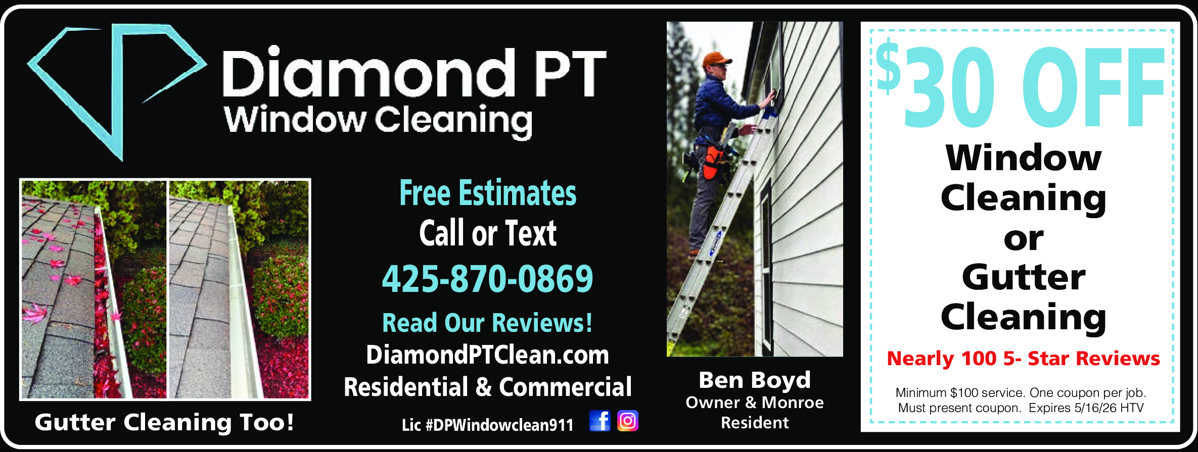 Minimum $100 service. One coupon per job. Must present coupon. Expires 5/16/26. HTV