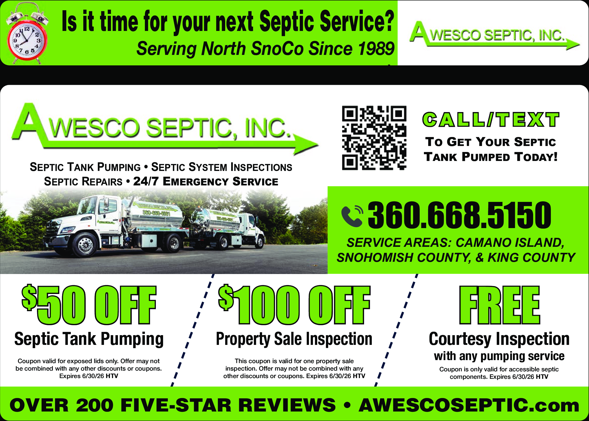 Coupon is only valid for accessible septic components. Expires 6/30/26. HTV